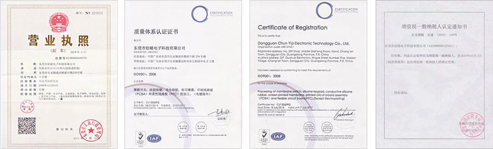 創(chuàng)銘一直注重薄膜開關(guān)的使用材質(zhì)、產(chǎn)品品質(zhì)、按鍵壽命、生產(chǎn)交期等等,發(fā)展期間2016年創(chuàng)銘電子獲得“中國AAA級誠信企業(yè)”榮譽證書和“重合同守信用示范企業(yè)”榮譽證書;同年注冊‘創(chuàng)銘’‘chunyip’等商標(biāo);足以表明創(chuàng)銘電子對客戶的重視程度,對品質(zhì)要求的嚴(yán)格,對創(chuàng)銘這個品牌的信譽做保護。